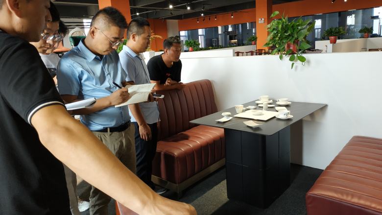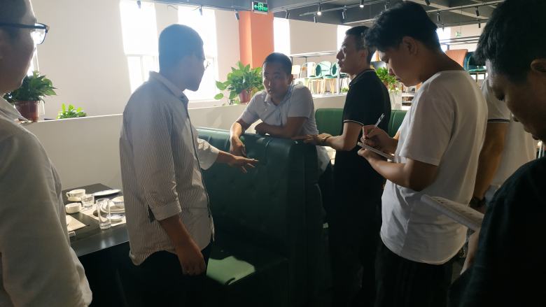 隨后,周經(jīng)理帶領(lǐng)新伙伴挨個(gè)對(duì)展廳里面的餐桌椅及電動(dòng)餐桌和卡座沙發(fā)做了深入講解,現(xiàn)場不明白的問題新員工也都及時(shí)的得到了清晰地答復(fù)。在后面的互動(dòng)環(huán)節(jié),周經(jīng)理還隨機(jī)點(diǎn)名讓新員工對(duì)展廳里面的餐桌的材質(zhì)進(jìn)行回答,還包括電動(dòng)餐桌的尺寸計(jì)算,餐椅配備數(shù)量計(jì)算等基礎(chǔ)問題進(jìn)行了考核,大家的回答幾乎都是正確的。