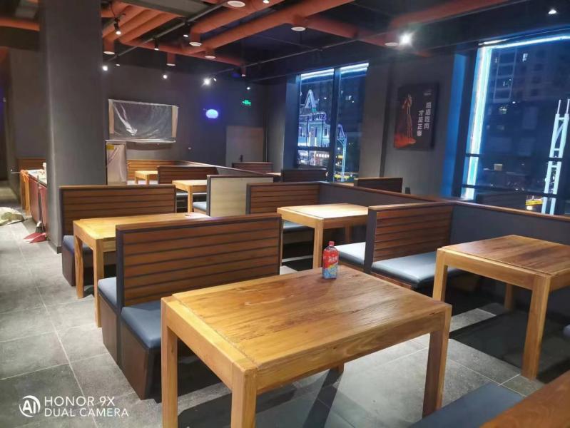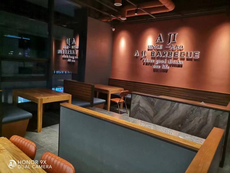 阿記燒烤商洛山陽縣店餐飲桌椅卡座沙發(fā)安裝到位
