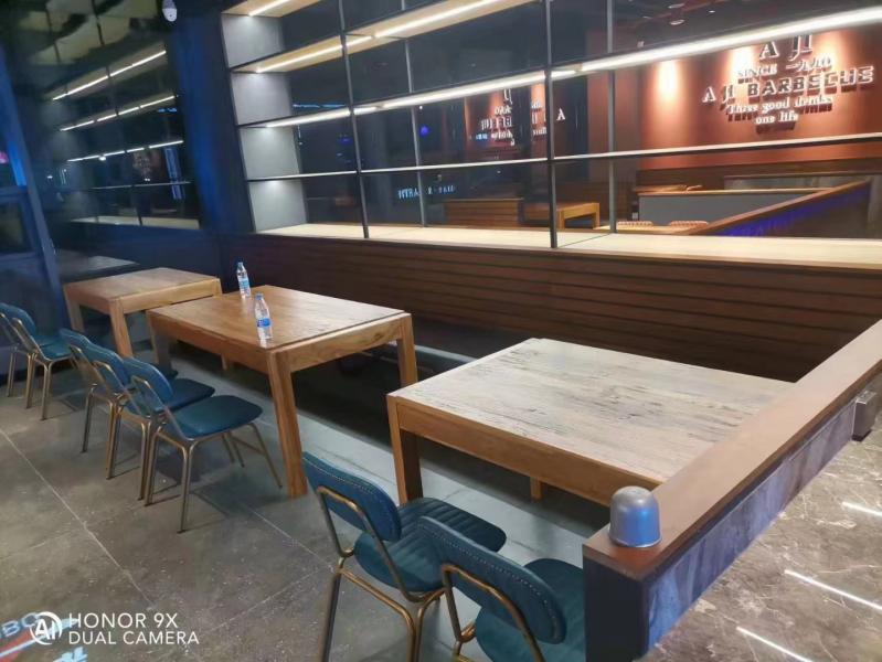 從簽訂合同收到定金到安裝交付結(jié)束,僅僅用了22天時間,阿記燒烤山陽店在西安博菲克酒店餐飲家具工廠訂購的一批餐桌椅、卡座沙發(fā)、茶臺等家具順順利利的送到現(xiàn)場安裝完成。