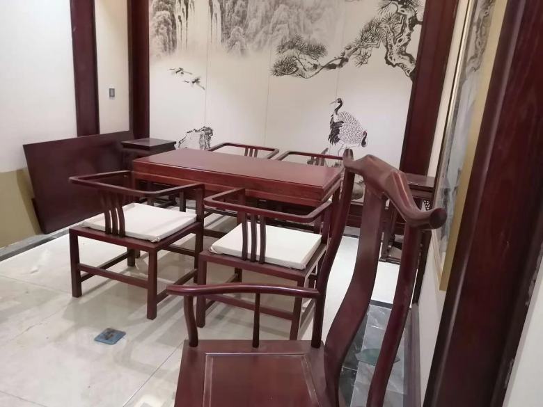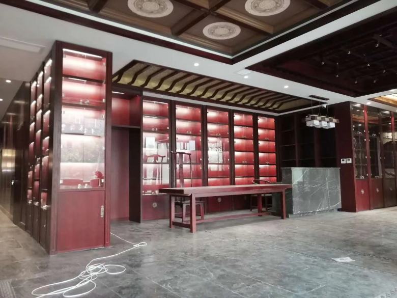 本工程是由我廠為西安某高端茶樓定制的整體家具,風格大氣,古樸典雅。通過西安酒店家具廠家博菲克木工師傅們嫻熟的精雕細琢,一件件定制家具就像“藝術(shù)品”般完美的交付給客戶,令在場的所有人為之著迷,是休閑聚會、洽談生意、接待貴賓的好去處!
