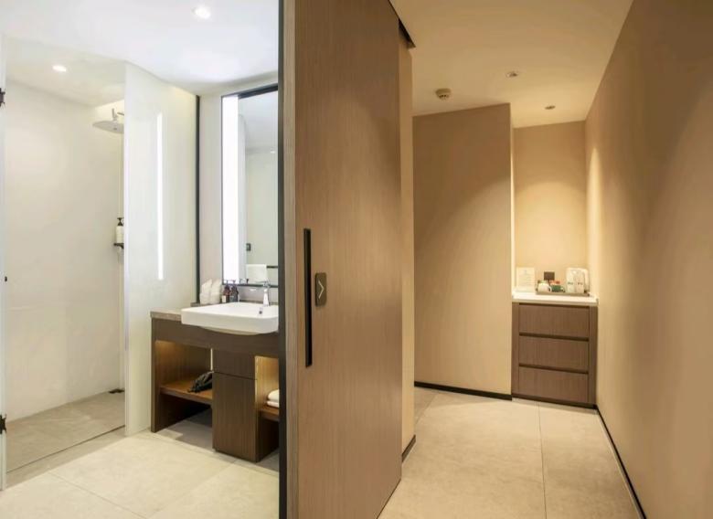 平?jīng)鰵g閱酒店環(huán)保性好,床、柜等選用E0級板式家具,移動家具則由我廠負(fù)責(zé)搭配設(shè)計,與客房整體風(fēng)格協(xié)調(diào),并且更好的提升了室內(nèi)空間的氛圍感和時尚感。