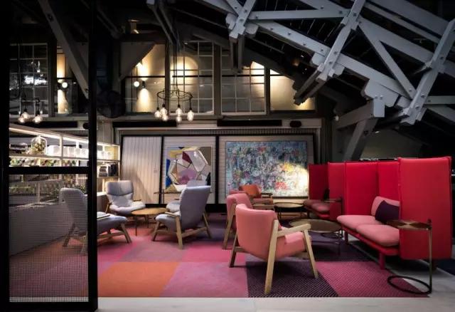 OW的設(shè)計靈感來自大自然,設(shè)計師用以打造集古典情懷與現(xiàn)代奢華于一身的旅店內(nèi)部。大廳依舊保留了舊廠房的格局,裸露鋼筋的三角結(jié)構(gòu),如溫室般的玻璃屋,屋中屋設(shè)計式樣的簡約柜臺,支撐一樓空間的黑色鋼骨及原木建材,無一不散發(fā)著帶有高雅氣息的工業(yè)風(fēng)格,同時有兼具了時尚氣質(zhì)。這里所有的元素,都粗獷而豪放,像極了穿著黑色西裝打著領(lǐng)帶的禁欲系男人。但一切黑色鋼鐵透明玻璃又都巧妙融于采光明亮的空間里,帶了些許柔和的色彩。然而公共休息區(qū)的酒吧、咖啡室、餐廳采用鮮艷的色彩,并通過簡約的細(xì)節(jié)做區(qū)隔。在室內(nèi),隨處可見郁郁蔥蔥的綠色植物和樹木,點綴于各個角落。