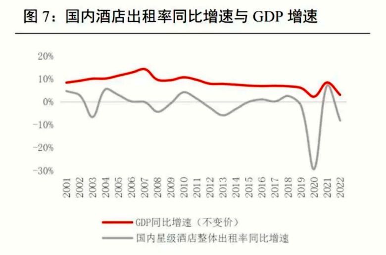 我們認(rèn)為 GDP 對(duì)酒店行業(yè)的影響在逐漸減弱,行業(yè)內(nèi)部供需結(jié)構(gòu)調(diào)整對(duì)酒店行業(yè)更重要。從中、美兩國(guó)入住率同比增速和 GDP 增速趨勢(shì)可以看出,兩者呈現(xiàn)分階段相關(guān)的特點(diǎn)。2008-2009、2010-2012 兩個(gè)階段入住率同比增速和 GDP 增速相關(guān)性較大,2013 年之后影響入住率的主要因素轉(zhuǎn)向行業(yè)內(nèi)供需結(jié)構(gòu)調(diào)整,疊加限三公、疫情等突發(fā)事件影響,相關(guān)性逐漸減小。