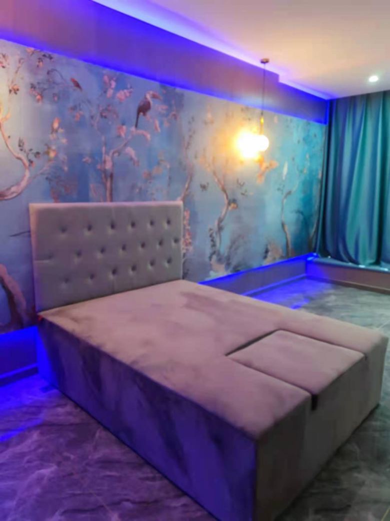 趙總在項目裝修期間就開始考察西安足浴沙發(fā)廠家,經(jīng)朋友介紹到藍田一家工廠參觀,小作坊式的工廠讓趙總擔(dān)心品質(zhì)不合格。于是,他通過搜索找到了博菲克定制家具廠。